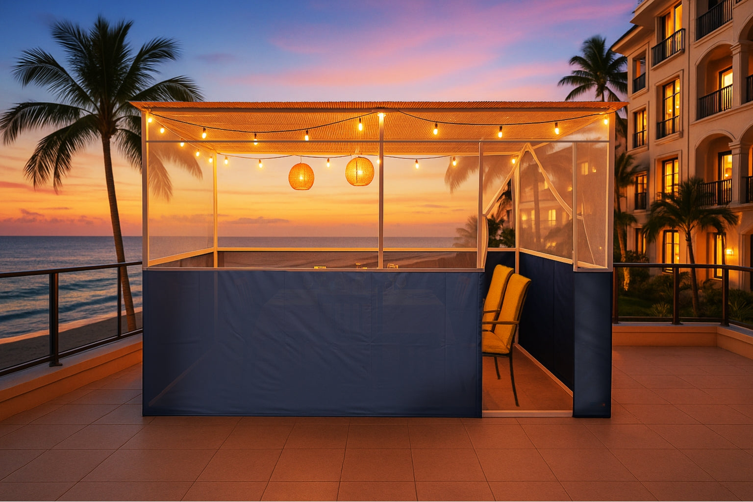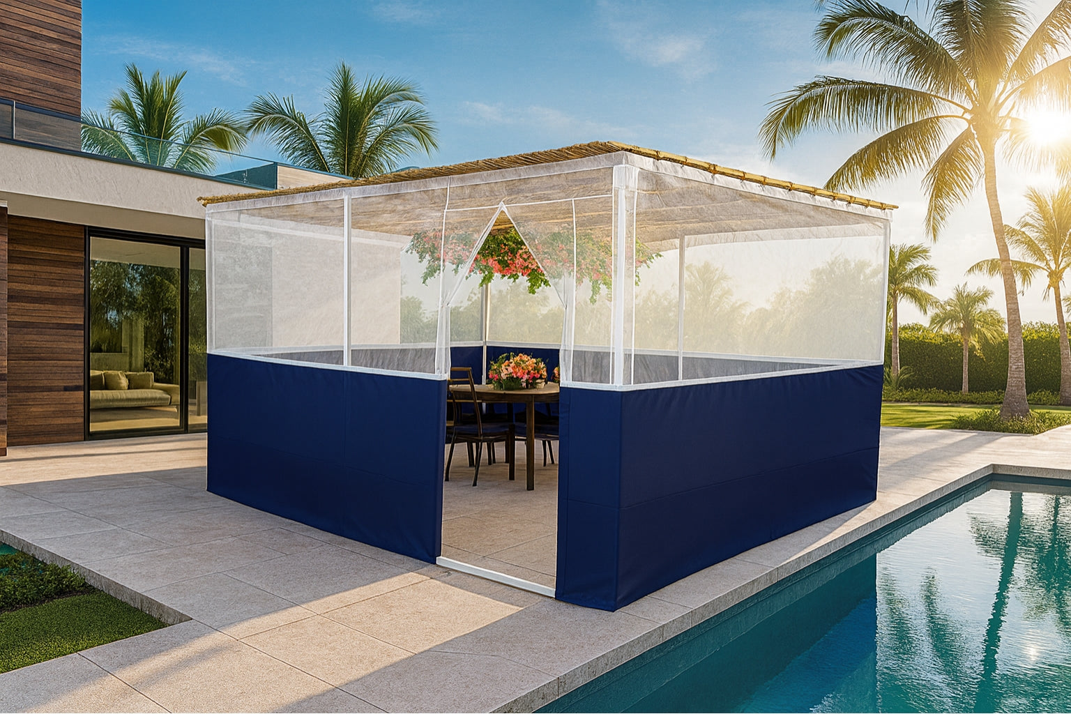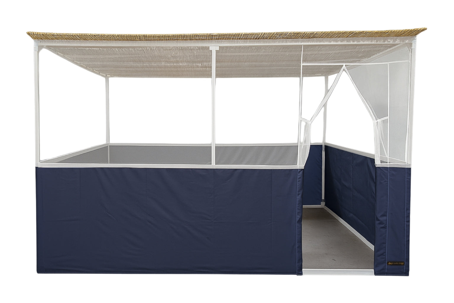 The Florida Sukkah is bright, breezy, and built for comfort. Its light mesh fabric welcomes every breeze, creating a cool, airy sukkah that invites delight and ease in warmer climates.